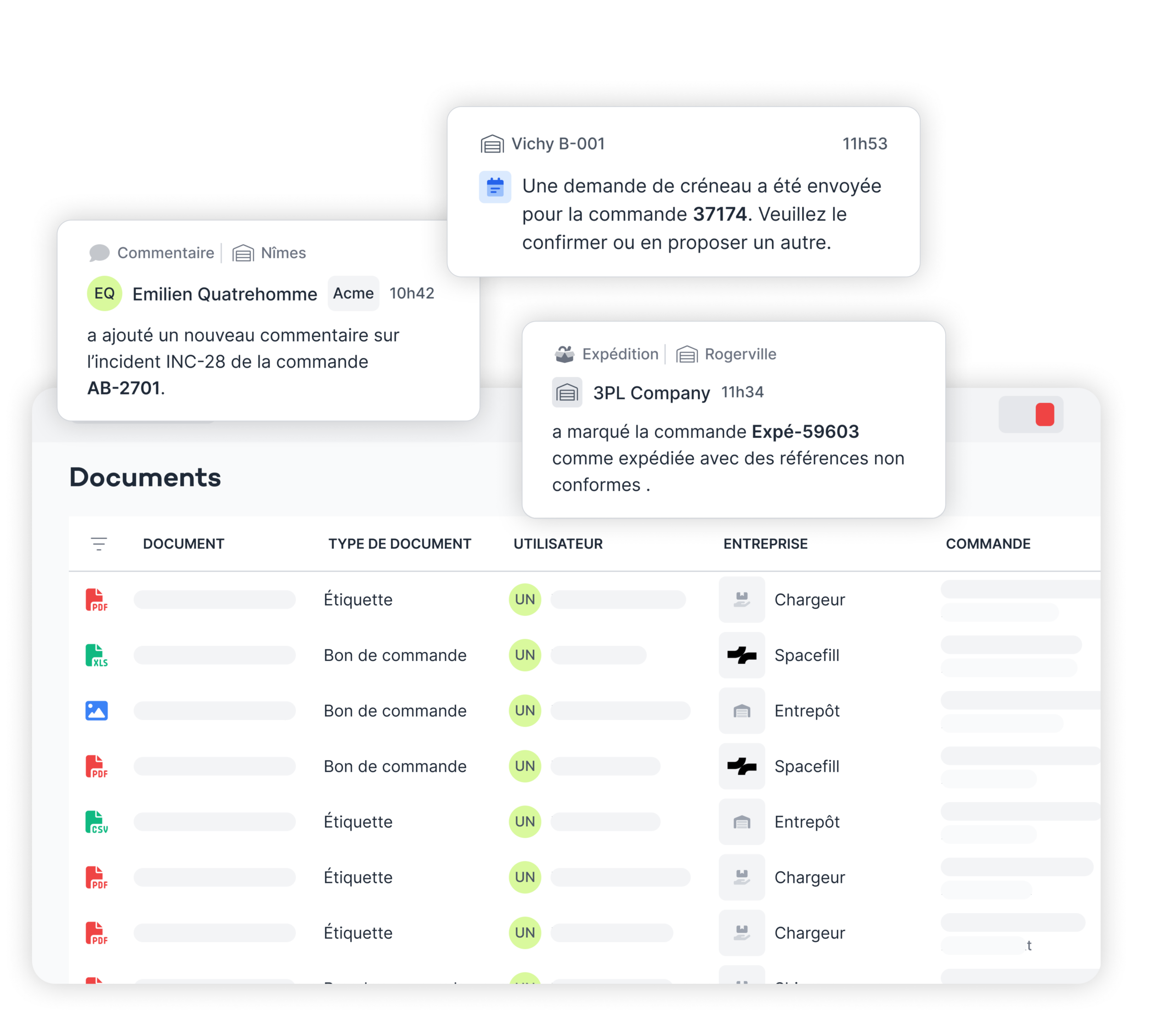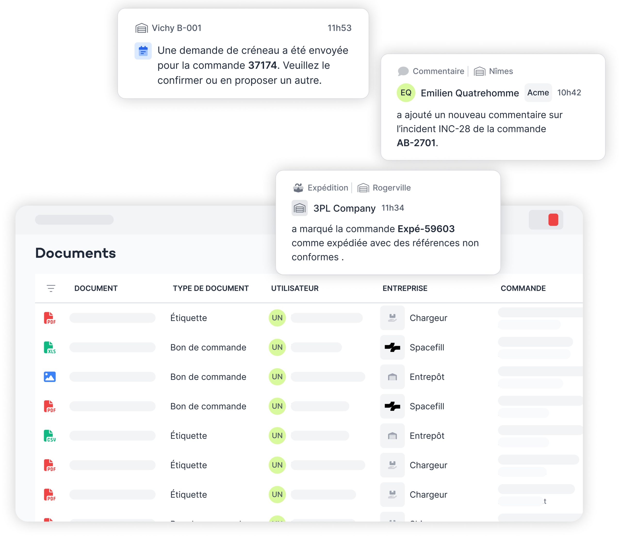 Passez vos ordres d’entrée ou de sortie et téléchargez vos documents (BL, factures, inventaires) sans envoyer un seul email.